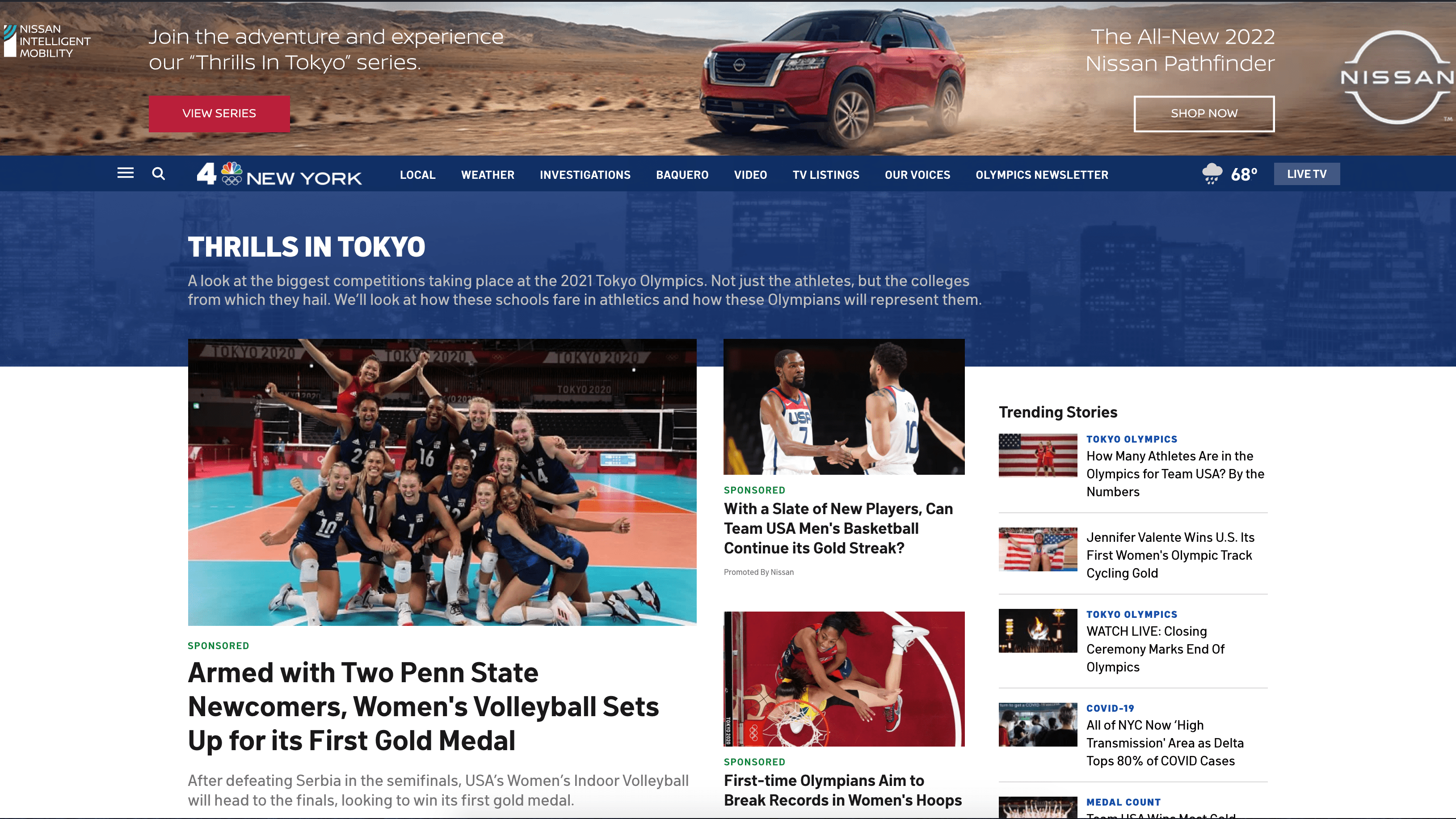 One of the biggest projects I led at NBCUniversal was the branded content strategy for Nissan during the 2020 Tokyo Olympics. For Thrills in Tokyo we highlighted athletes from schools supported by Nissan who participated in the Olympics. We created 14 pieces of Native content—featuring at least two schools per story—which resulted in over 5 million impressions across social and NBC Local Sites.La ciudad detenida, a first-hand account for Somos of the COVID-19 pandemic days in New York City.Reviewed Claudia Llosa’s La Teta Asustada / The Milk of Sorrow for Crucial 21st Century Cinema #DirectedbyWomen, a communal blogging initiative that will run through 2019.Photo essay for Malquerida from the 2018 Women’s March in New York City.